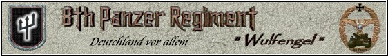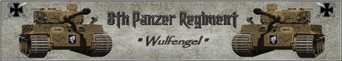 The 8.PzRgt is loosely organized along the lines of the historical WW2 German Armor Regiment of the same name, and was formed during the early Summer of 2002 by it's 5 Original Founding Members: "Airborne", "Galland", "Pyroman", "Ppeene", and myself...with the aim of creating a highly-structured and professionally organized WW2OL Squad that accurately mirrored the Communications, Tactics, and Techniques of an actual Panzer Regiment.